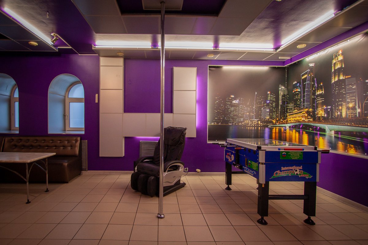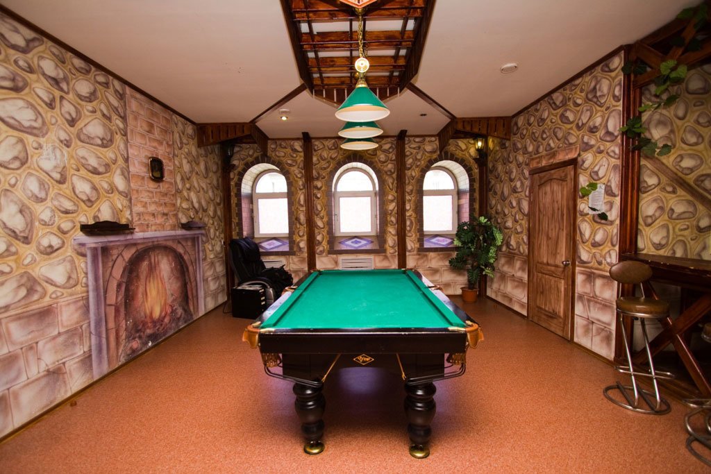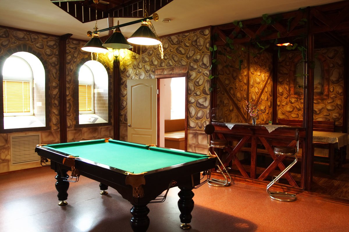 Не хочется в бассейн? Не беда! Вместо этого можно посидеть в нашей комнате отдыха. Мы ставили своей целью создать здесь уютный, практичный интерьер из преимущественно натуральных, безопасных материалов, подобрать мебель, которая будет в равной степени удобной и эстетичной. Надеемся, что вы его оцените! Для поддержания атмосферы отдыха мы можем предложить вам бильярд, камин и караоке. У нас нет собственной кухни, но мы ничего не имеем против, если вы придете со своей едой и совместите посещение бани с небольшим застольем. Главное помните, что плотная трапеза незадолго перед посещением парной - это не самая удачная идея, по мнению терапевтов. А вот после парной она совсем не повредит!