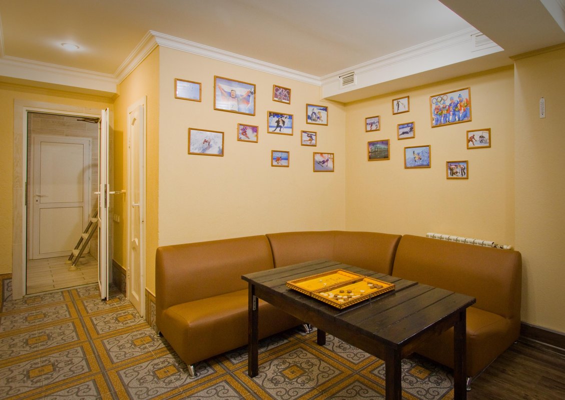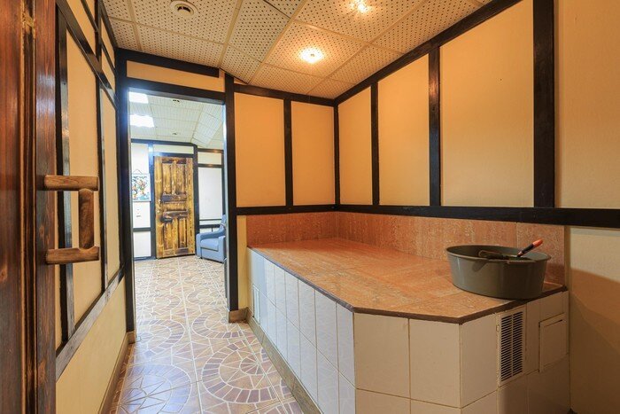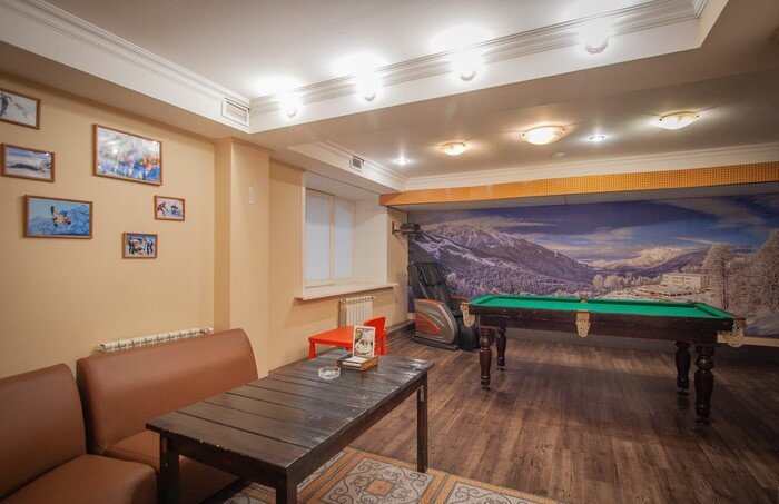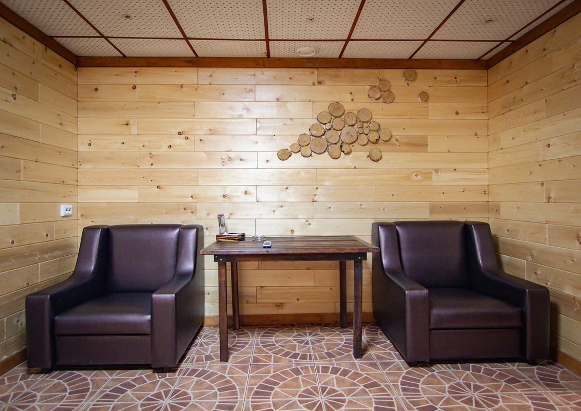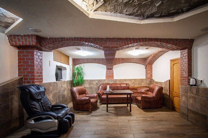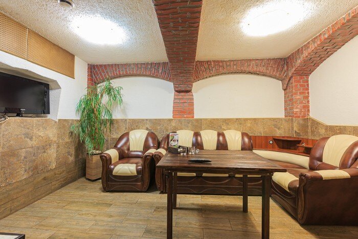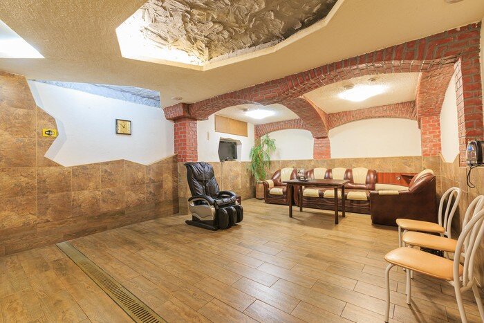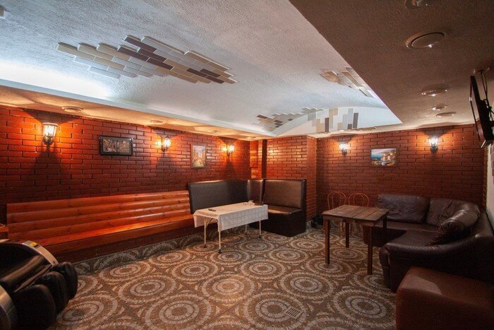 Не хочется в бассейн? Не беда! Вместо этого можно посидеть в нашей комнате отдыха. Мы ставили своей целью создать здесь уютный, практичный интерьер из преимущественно натуральных, безопасных материалов, подобрать мебель, которая будет в равной степени удобной и красивой. Надеемся, что он придется вам по душе! Для поддержания атмосферы отдыха мы можем предложить вам караоке. У нас нет собственной кухни, но мы ничего не имеем против, если вы придете со своей едой и совместите посещение бани с небольшим застольем. Главное помните, что плотная трапеза незадолго перед посещением парной - это не самая удачная идея, по мнению врачей. А вот после парной - совсем другое дело!