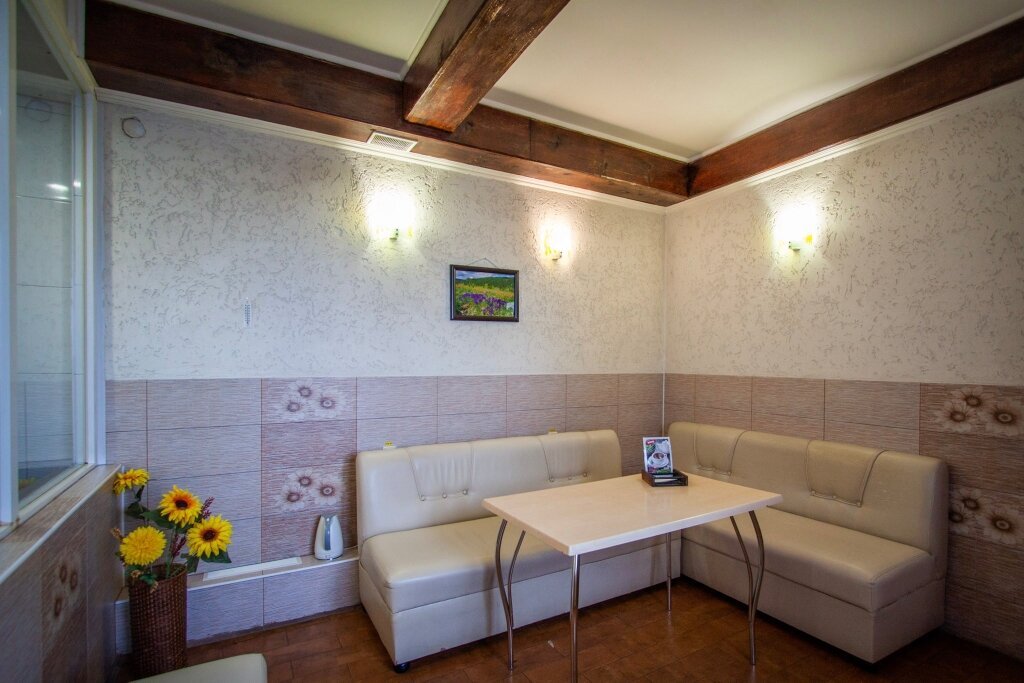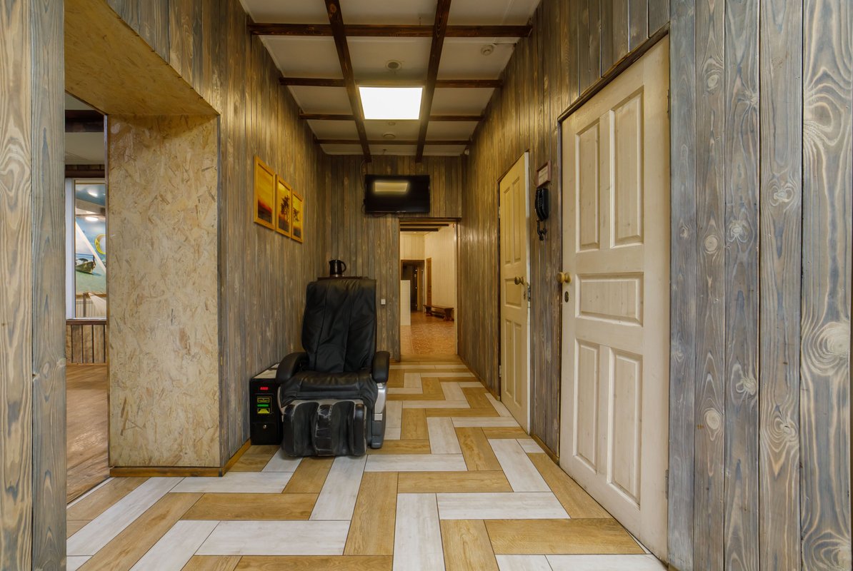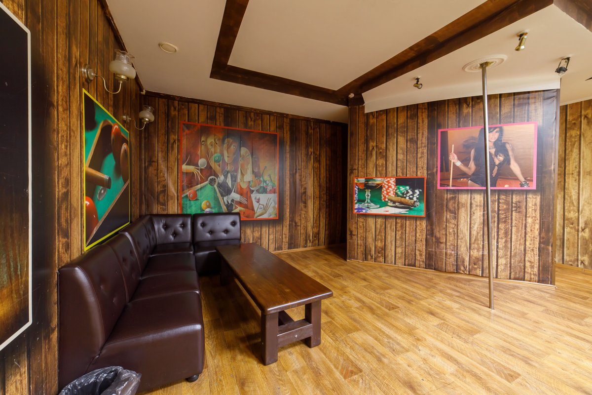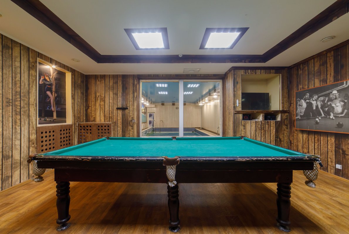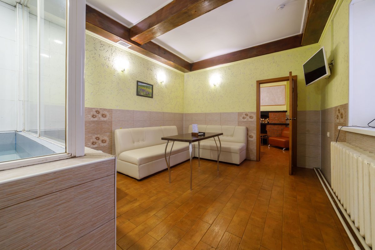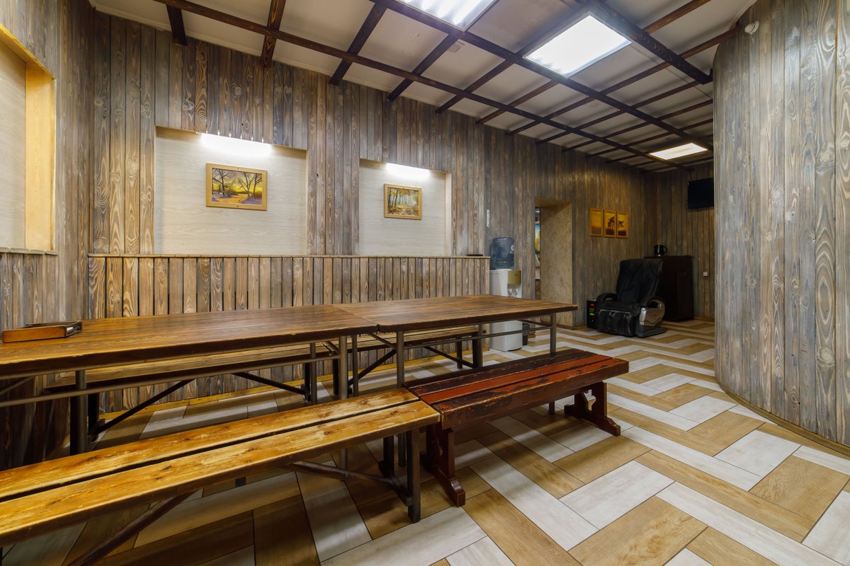 Не хочется в бассейн? Не проблема! Вместо этого можно посидеть в нашей комнате отдыха. Мы постарались создать здесь комфортный, стильный интерьер из максимально натуральных, экологичных материалов, выбрать мебель, которая будет одновременно удобной и эстетичной. Надеемся, что вы его оцените! Для создания настроения у нас есть бильярд, камин и караоке. Мы не располагаем собственной кухней, но не возражаем, если вы принесете еду с собой и совместите баню с импровизированным застольем. Только не забывайте, что плотная трапеза непосредственно перед посещением парной - это не самая хорошая идея, согласно мнению врачей. А вот после парной она совсем не повредит!