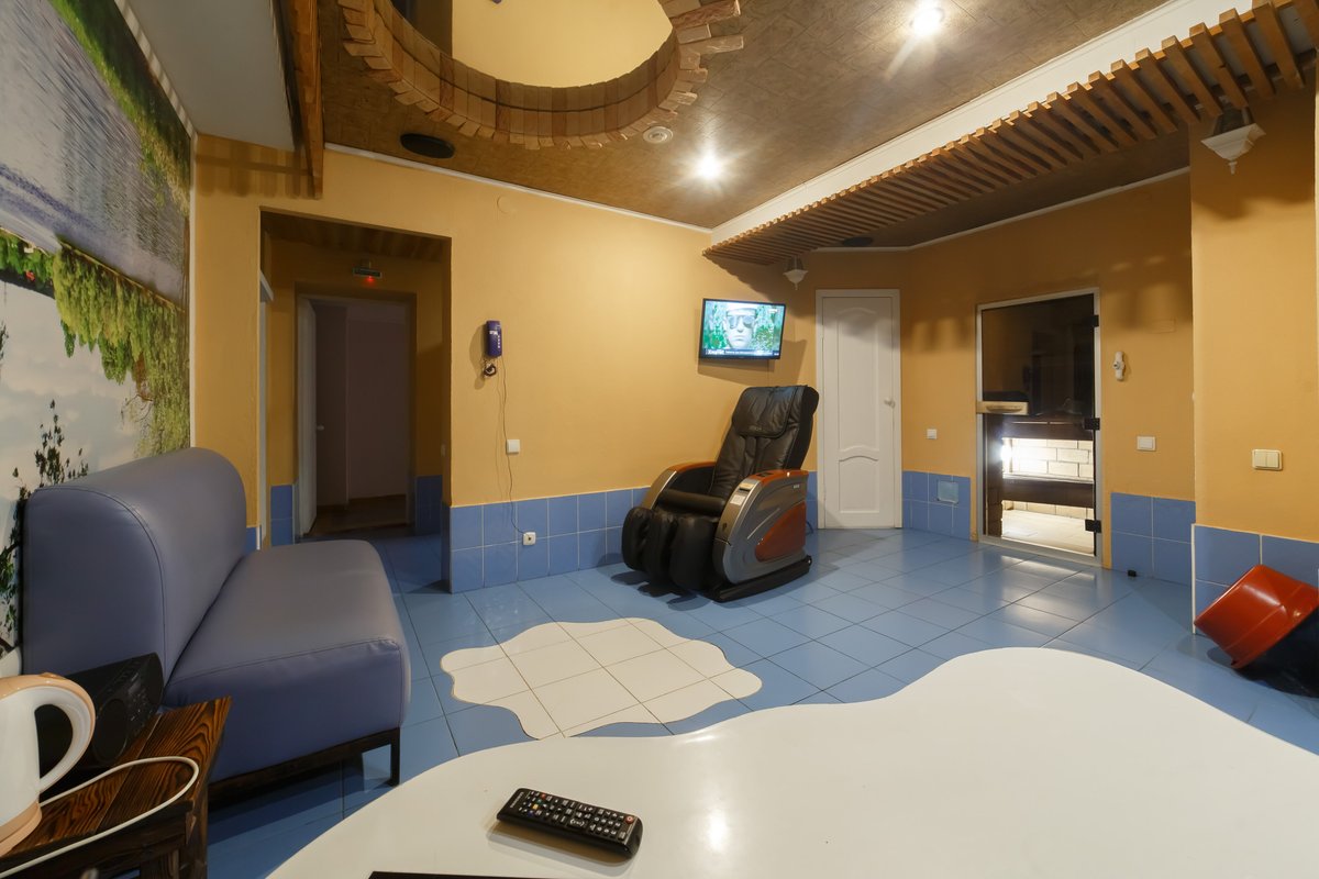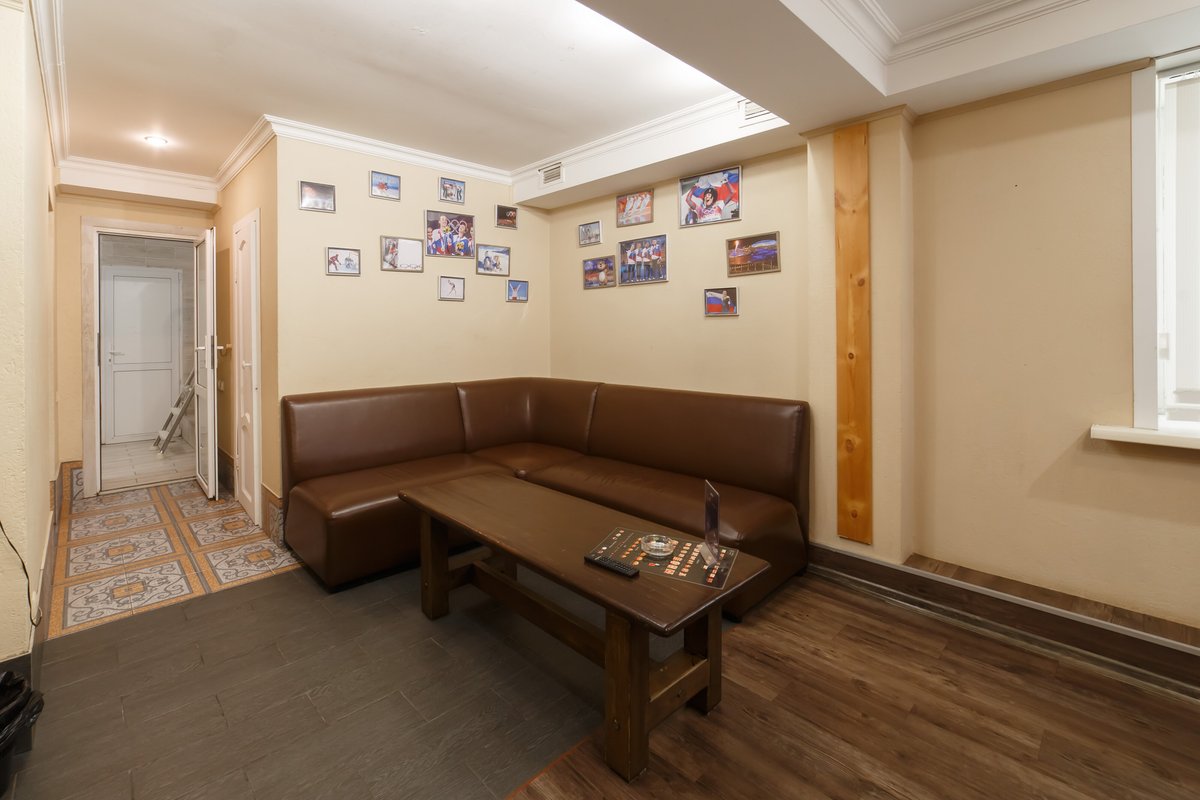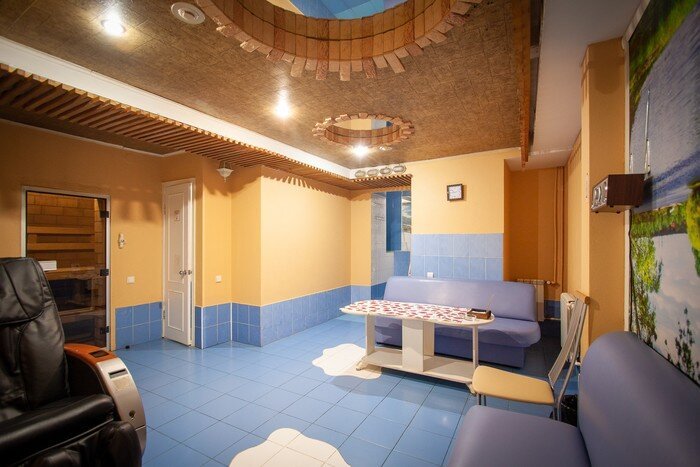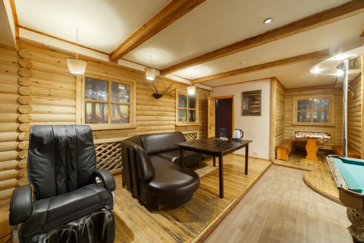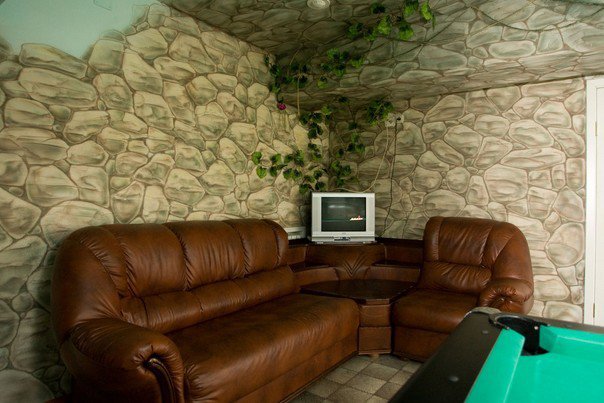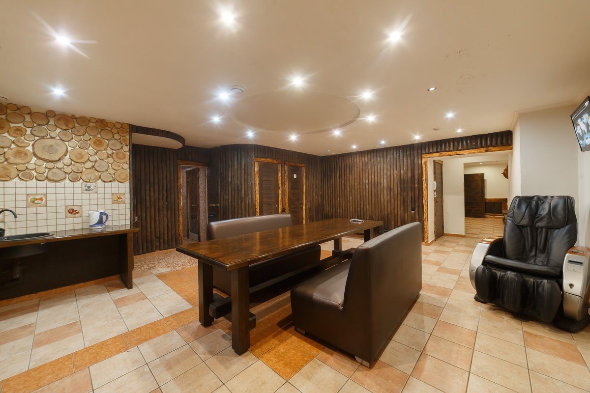 Не хочется в бассейн? Не беда! Вместо этого можно передохнуть в нашей комнате отдыха. Мы ставили своей целью создать здесь уютный, практичный интерьер из преимущественно натуральных, безопасных материалов, подобрать мебель, которая будет в равной степени удобной и эстетичной. Надеемся, что он придется вам по душе! Для поддержания атмосферы отдыха мы можем предложить вам бильярд.