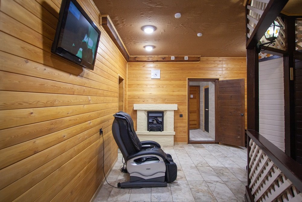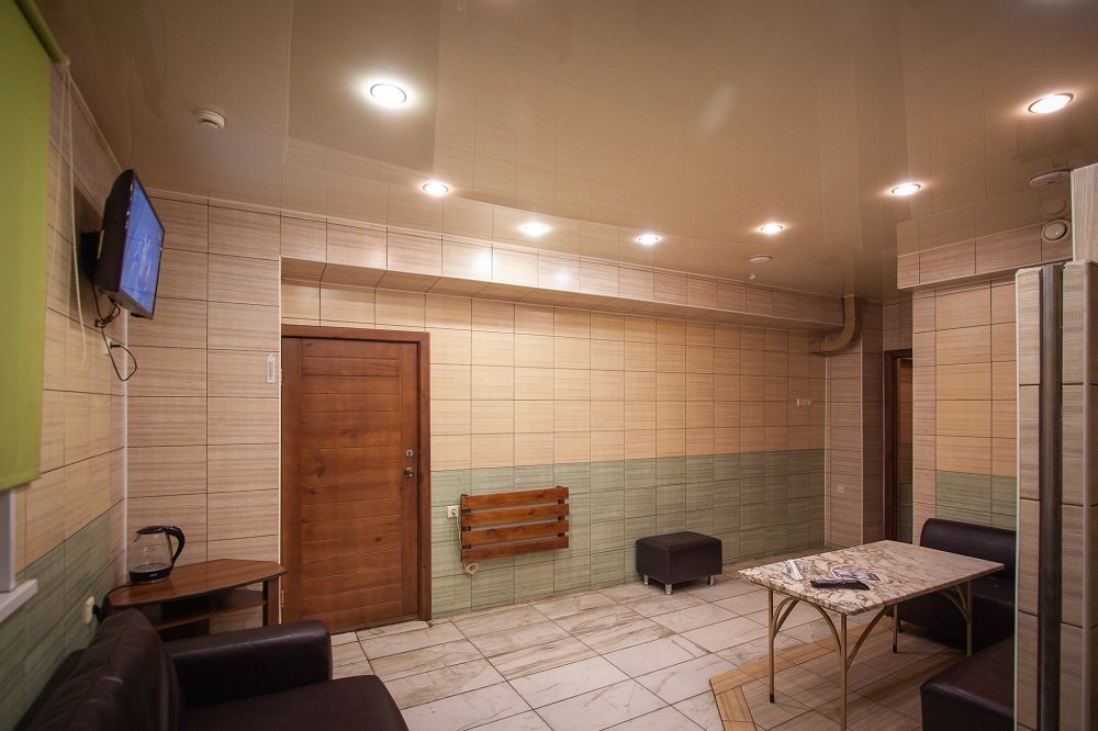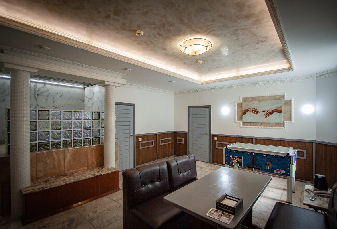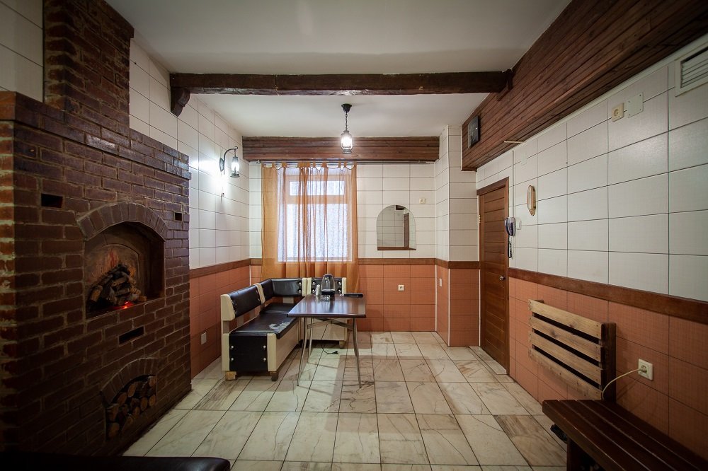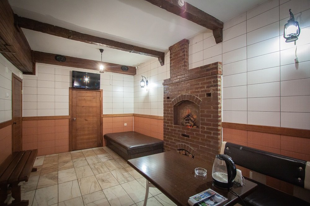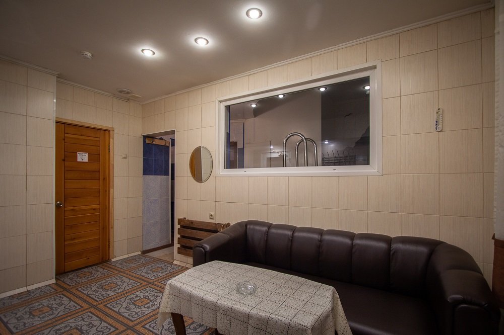 Не хочется в бассейн? Не беда! Вместо этого можно провести время в нашей комнате отдыха. Мы ставили своей целью создать здесь уютный, практичный интерьер из преимущественно натуральных, безопасных материалов, подобрать мебель, которая будет в равной степени удобной и эстетичной. Надеемся, что вы его оцените! Для поддержания атмосферы отдыха мы можем предложить вам бильярд, камин и караоке. У нас нет собственной кухни, но мы ничего не имеем против, если вы придете со своей едой и совместите посещение бани с небольшим застольем. Главное помните, что плотная трапеза незадолго перед посещением парной - это не самая удачная идея, по мнению терапевтов. А вот после парной можно трапезничать смело!