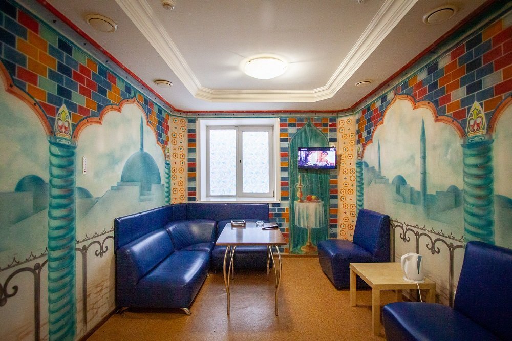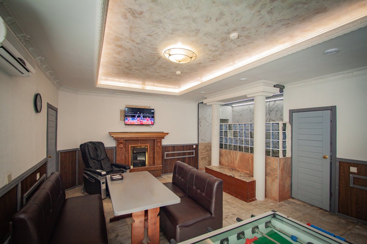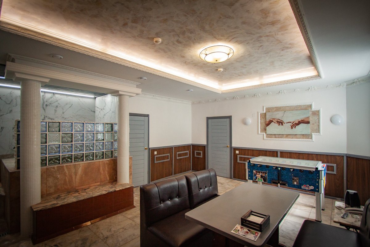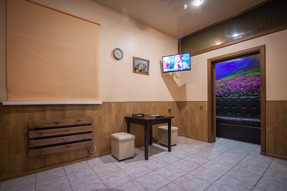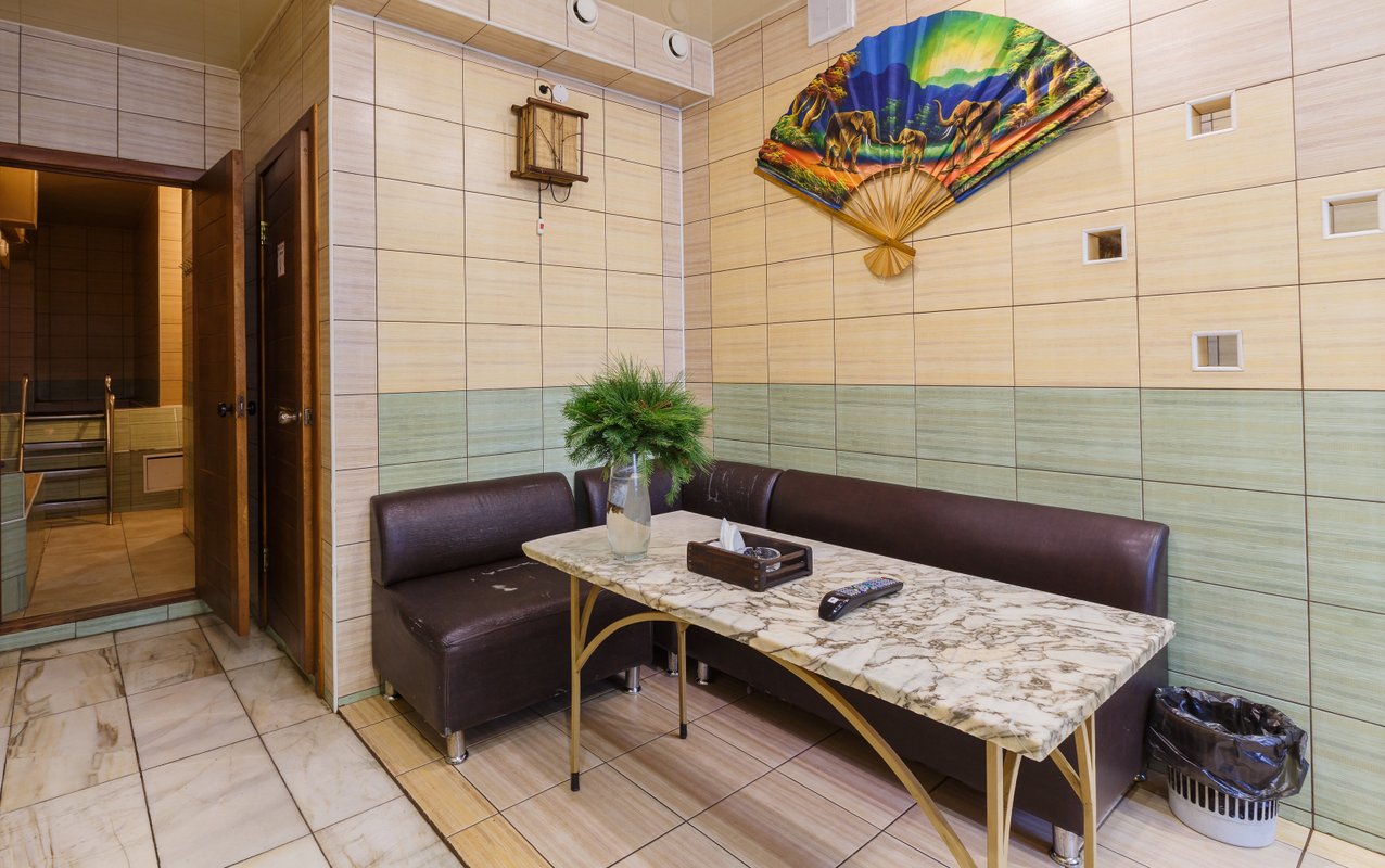 Не хочется в бассейн? Не беда! Вместо этого можно провести время в нашей комнате отдыха. Мы ставили своей целью создать здесь уютный, практичный интерьер из преимущественно натуральных, безопасных материалов, подобрать мебель, которая будет в равной степени удобной и эстетичной. Надеемся, что вы его оцените! Для поддержания атмосферы отдыха мы можем предложить вам бильярд, камин и караоке. У нас нет собственной кухни, но мы ничего не имеем против, если вы придете со своей едой и совместите посещение бани с небольшим застольем. Главное помните, что плотная трапеза незадолго перед посещением парной - это не самая удачная идея, по мнению терапевтов. А вот после парной можно трапезничать смело!